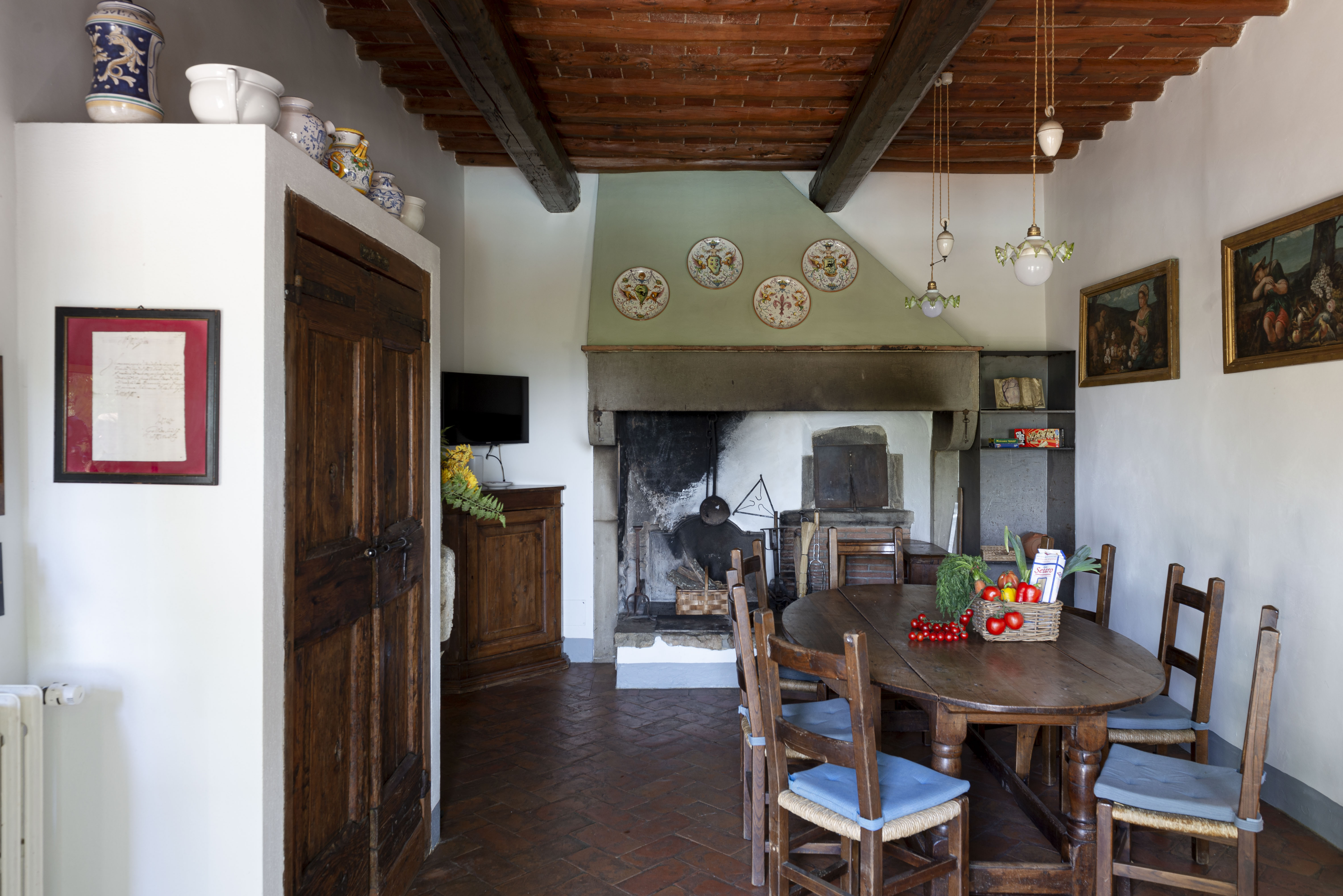 Rustic kitchen fireplace