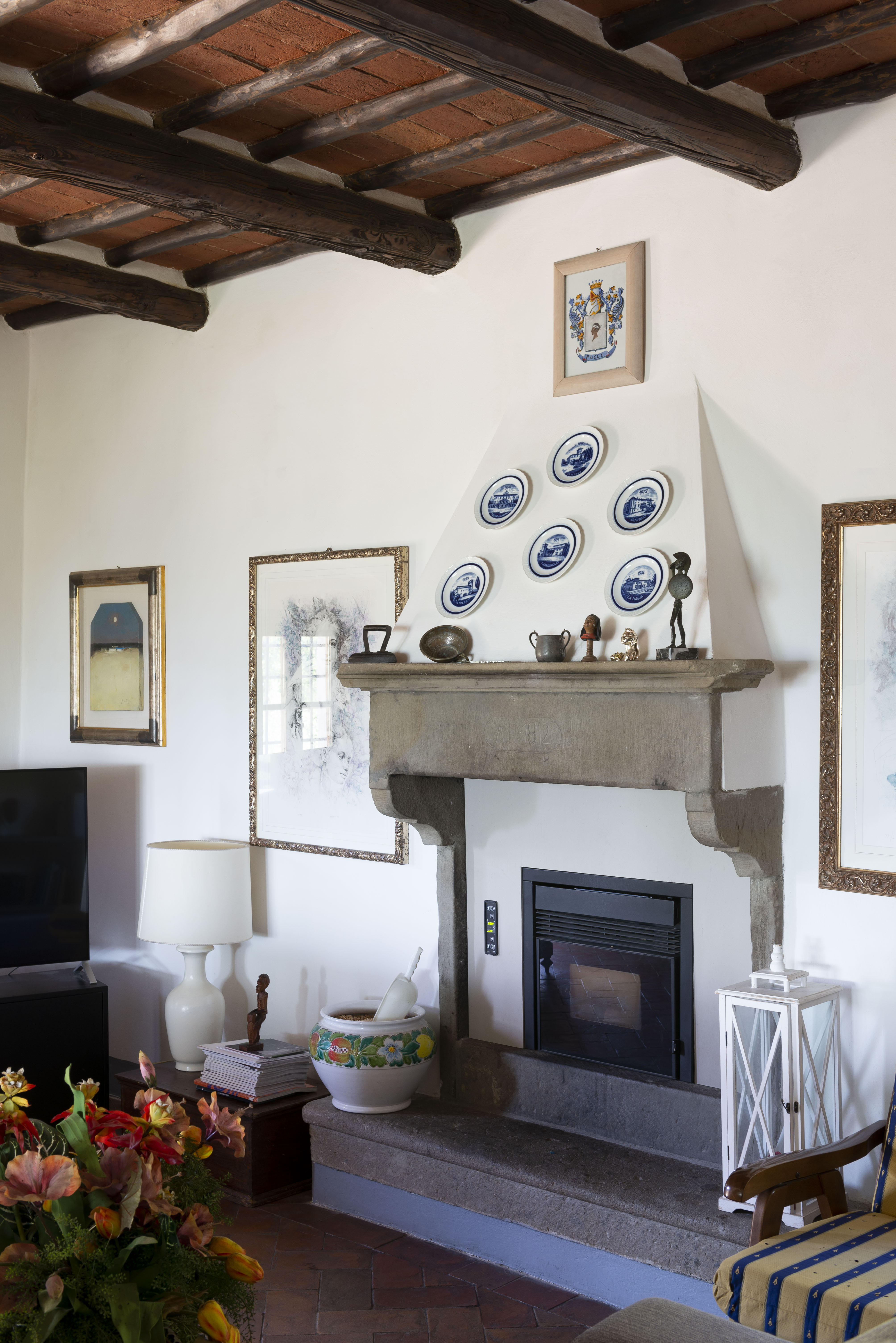 Fireplace with ceramics