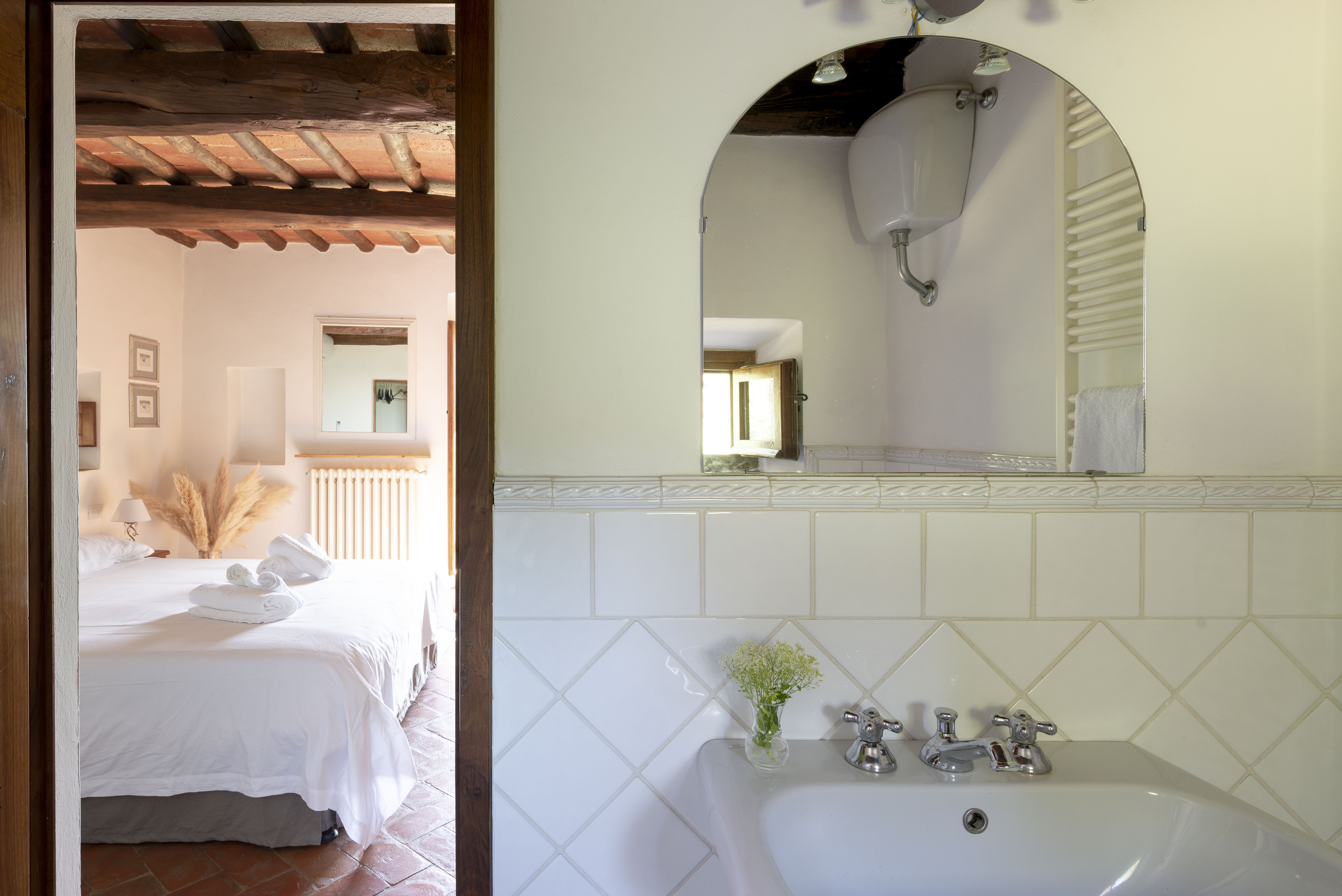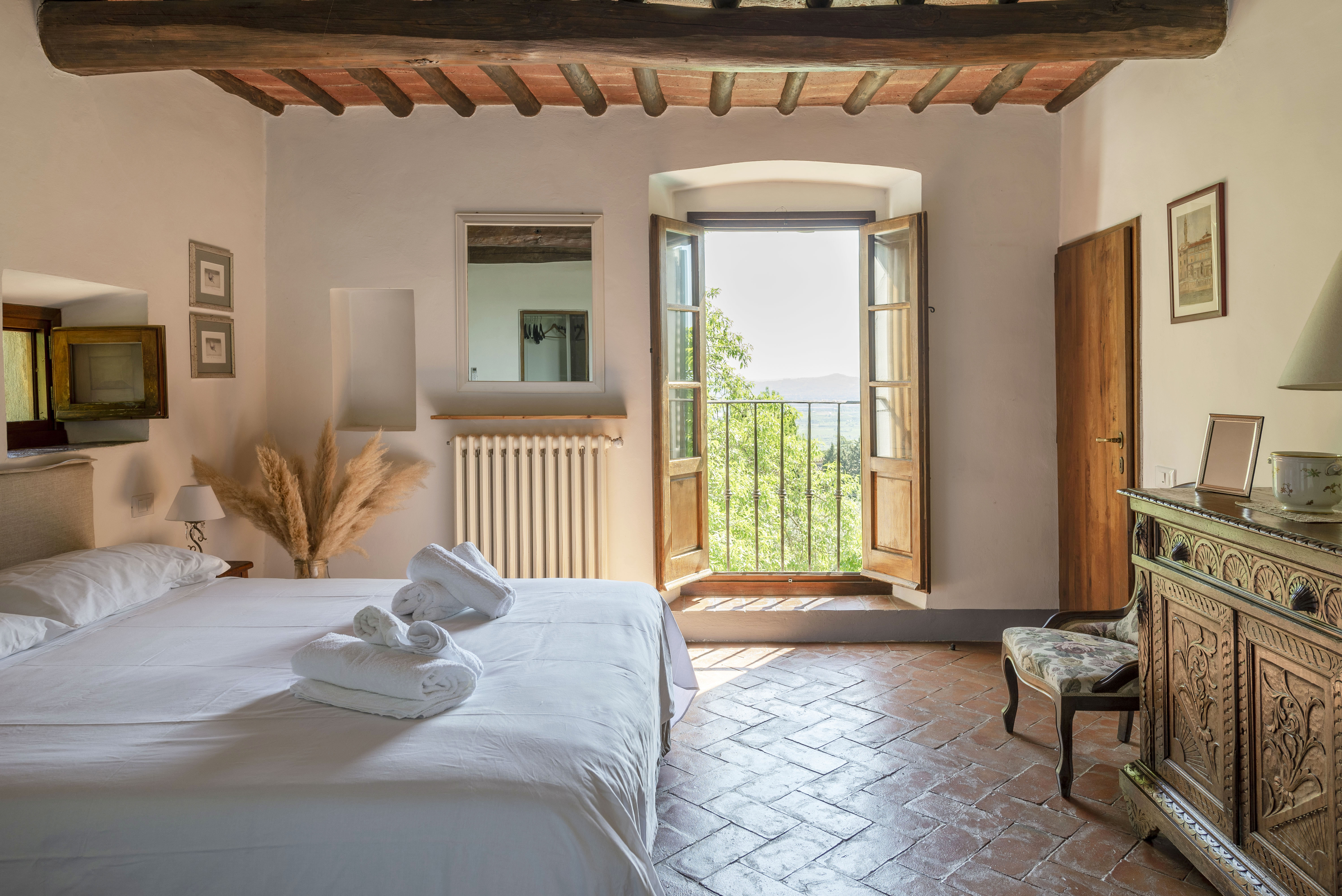 Beamed ceiling bedroom